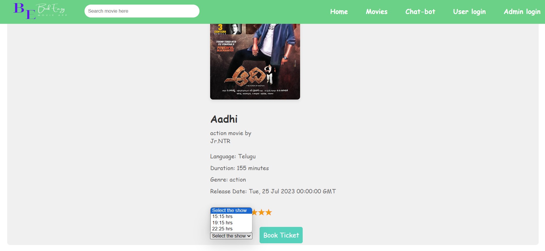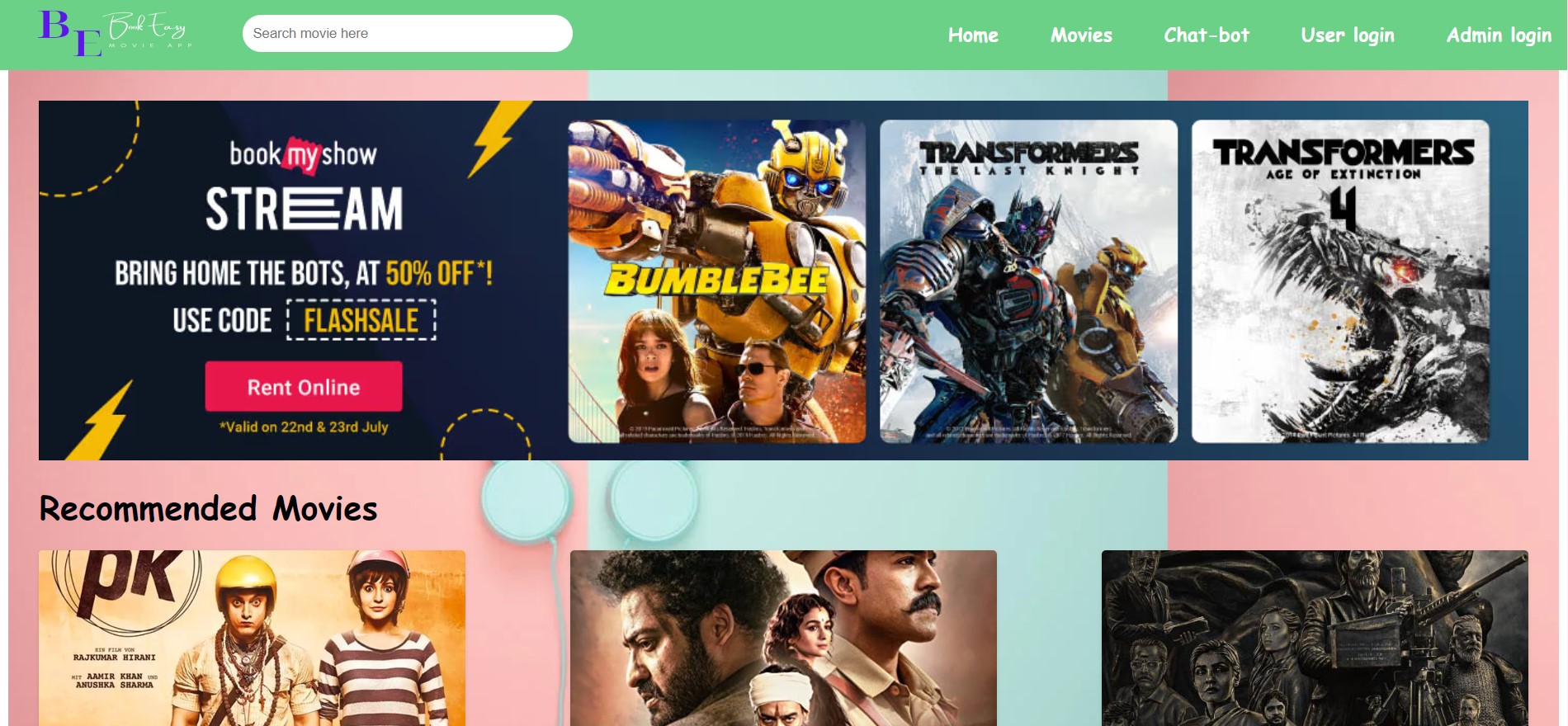 - Movies Page:- Movies list ,single-movie details and booking.