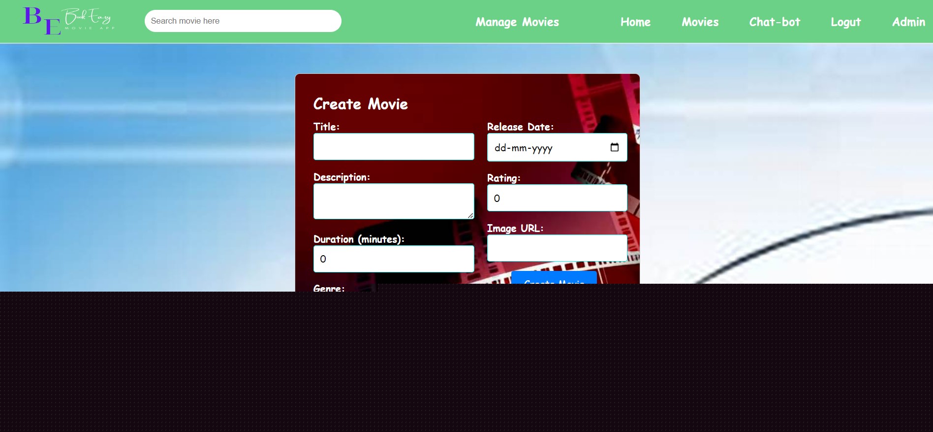 - Movies Management Page :- Manage Data of movies,shows and theaters.
