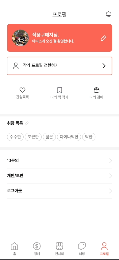 | 프로필 확인 및 수정 | 작가 전환 | 작가 프로필 수정 |