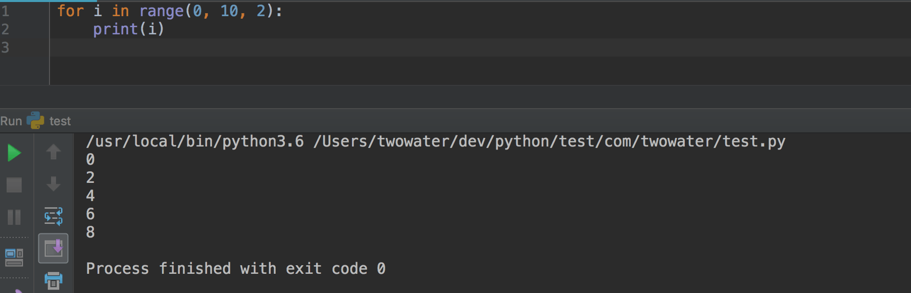 比如 range(0,10,2) , 它的意思是:从 0 数到 10(不取 10 ),每次间隔为 2 。