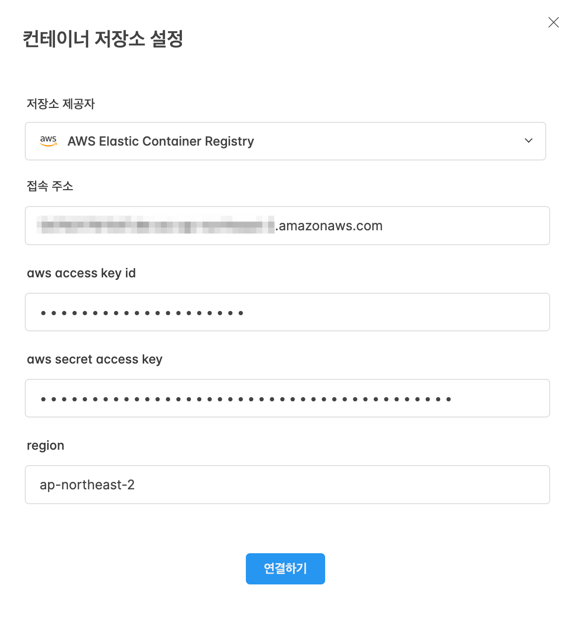 - 접속 주소: 1번 과정에서 확인한 ECR 접속 주소