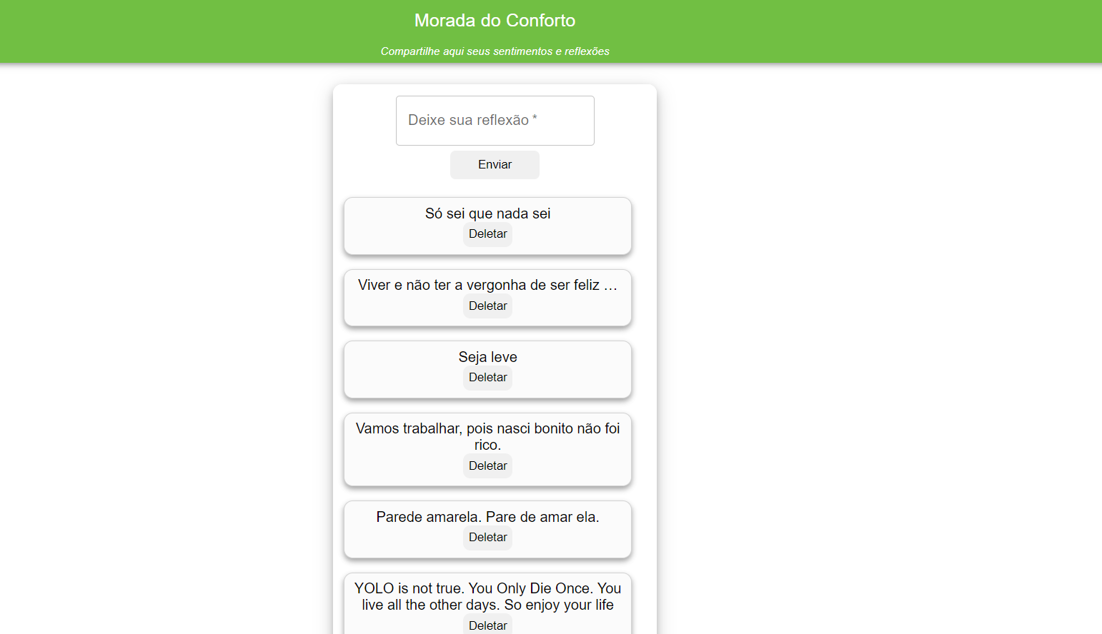 Renderização reativa (React) de todas as ações, ou seja, é possível ver todos as postagens e, ao criarmos uma, ela aparece automaticamente na tela. A mesma coisa ocorre ao deletar cada postagem.