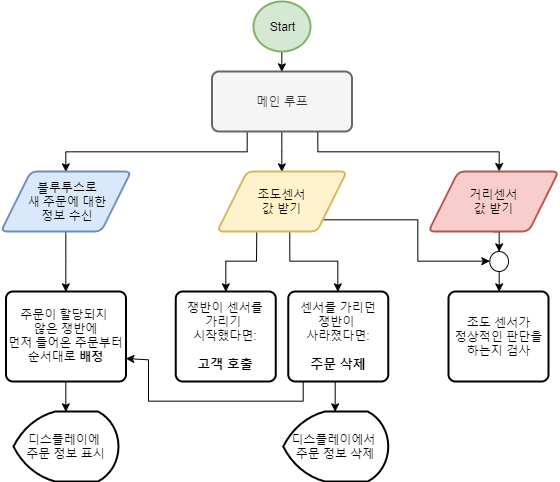 - 나는 아이디어 제공, 아두이노 프로그램 전체 기획, 큐를 비롯한 주문 관리 관련 함수, 어플 제작과 디자인(BLE 통신 포함), 각종 시각자료 제작을 맡았다.