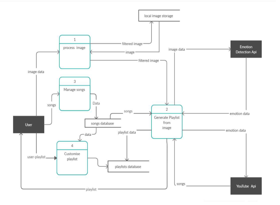 - Emotion Based Playlist: If the user chooses the option of emotion-based music, the user can upload their photo or capture image with device’s camera. The system will determine emotions and create playlists for the user based on emotion captured.