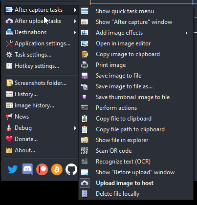 For your after capture tasks, make sure the only thing ticked is upload image to host: