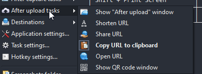 Next, for after upload tasks, make sure only copy url to clipboard is ticked: